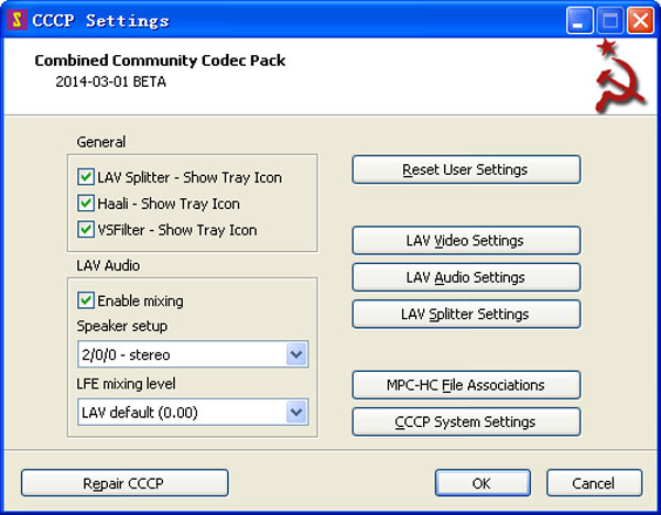 CCCP (Combined Community Codec Pack)是专门用来播放MKV格式的软件,只要安装了这套软件,就可以用Media Classic Player或是Windows Media Player来播放MKV文件。新版提供了对多核处理器的支持,增加了libmad高精度模式。MKV 是一种容器,用来封装各种影片格式(例如 RMVB、AVI),使用 MKV 封装的好处是可以让影片具有类似 DVD 的章节功能,外挂多国语言字幕与外挂音轨等。