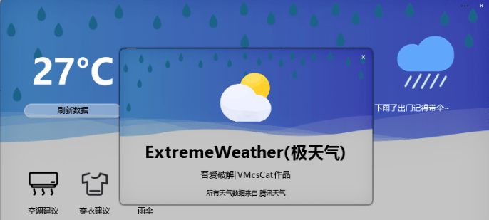 ExtremeWeather是一款非常好用的桌面工具,这款软件可以帮助用户在电脑桌面显示天气,能够精准的定位用户所选的地区,实时更新最新的天气情况,包含了温度、湿度、风速等等,而且软件还会非常贴心的提醒用户适当增减衣物。