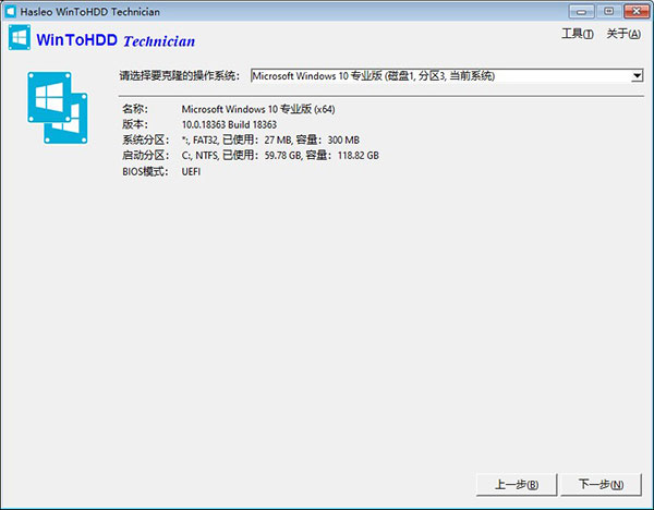步骤3、WinToHDD扫描并列出可安装的操作系统。如果看到要安装的Windows版本,请选择它,然后单击“下一步”。