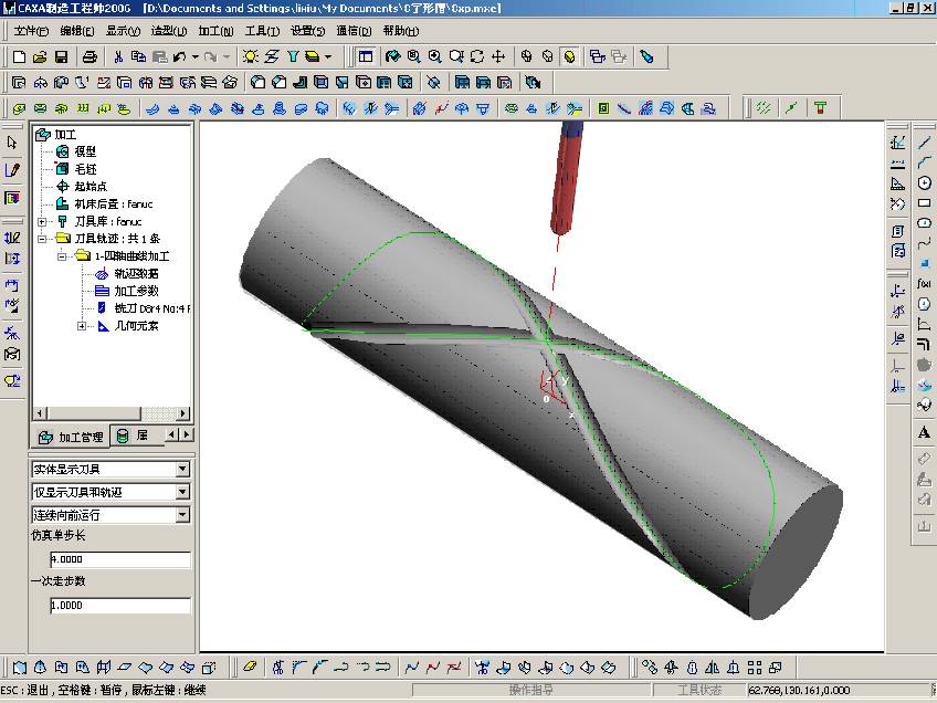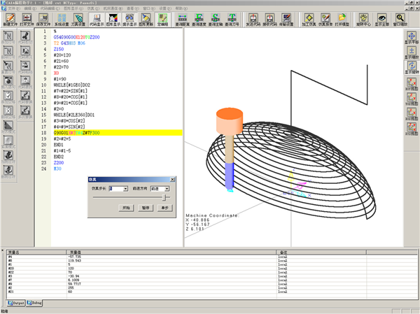 可直观、精确地对加工过程进行模拟仿真、对代码进行反读校验。仿真过程中可以随意放大、缩小、旋转,便于观察细节,可以调节仿真速度;能显示多道加工轨迹的加工结果。仿真过程中可以检查刀柄干涉、快速移动过程(G00)中的干涉、刀具无切削刃部分的干涉情况,可以将切削残余量用不同颜色区分表示,并把切削仿真结果与零件理论形状进行比较等。