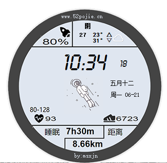 2、拥有时间、日期、天气、电量、卡路里等各种显示。