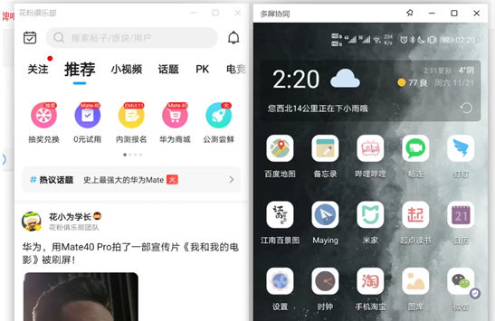 手机管理,轻松解决手机和计算机间的高速互联互通。相册、音乐完成与手机的自动连接并同步,实现手机照片、音乐的备份,解决手机内存不够的问题;文件分享与手机的Huawei Share完成文件的共享,实现多设备文件数据的直连免流量分享;一键热点直接将手机WLAN热点快速打开,实现电脑随时随地在网络条件下办公,在便捷上网的同时还能流量监控。