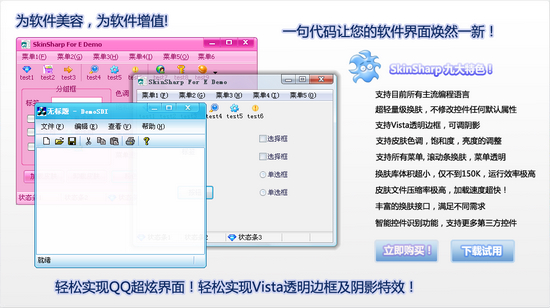6、换肤库体积小,仅不到150K,运行效率极高。
