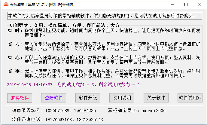 省时:多线程复制宝贝功能,短时间内复制多个宝贝,快速稳定,让您把更多的时间放在如何发展店铺上。