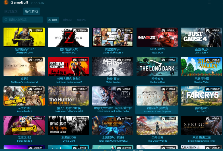 1、GameBuff修改器是一款游戏辅助工具,可为你玩的任何单机游戏都加上辅助BUFF,比如无敌、秒杀、道具修改等都能轻而易举地实现。