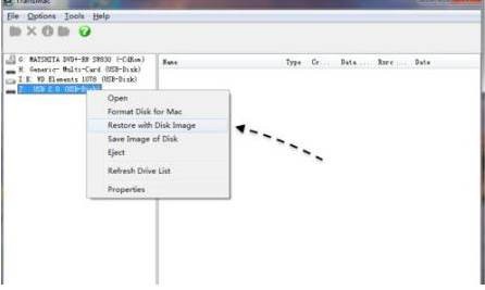 6、格式化之后,右键U盘选择“Restore with Disk Image”,选择mac os x镜像;