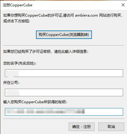 8、输入任何名称以及公司名称,将crack文件夹中提供的key填入密钥中;