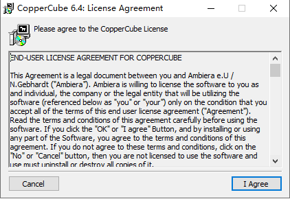 2、首先点击运行【CopperCube-6.3-Setup.exe】开始进入安装向导,点击i agree;