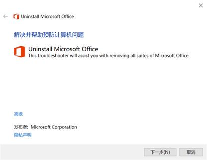 点击“开始卸载”,工具会弹出微软相关的操作项,按照提示信息逐次点击“下一步”操作即可。如图3: