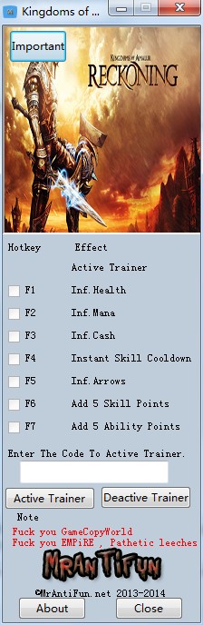 阿玛拉王国惩罚七项修改器是为同名游戏制作的一款辅助修改工具,添加了无限生命、发力、金钱以及无限箭,功能齐全,十分强大,是新手及菜鸟玩家通关必备的好帮手,好伙伴,需要的赶紧拿走吧。