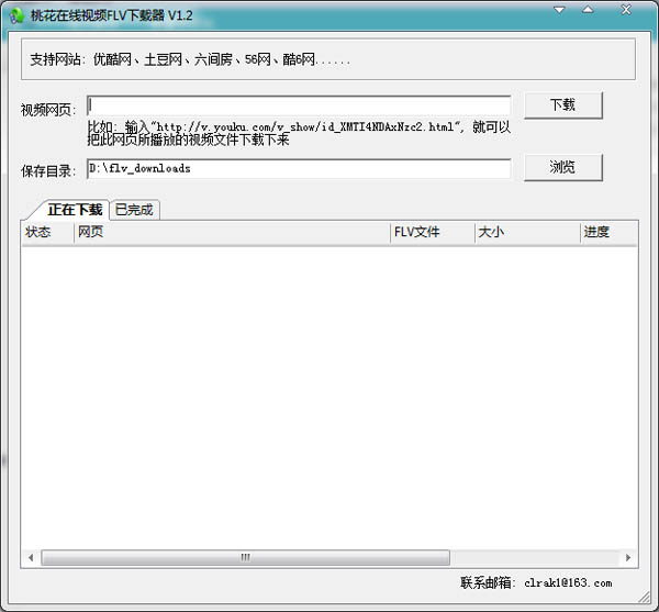 桃花在线视频FLV下载器可把各大视频网站上的视频下载到本地硬盘,方便随时浏览和观看,下载方法非常简单,只需把播放视频的网页地址复制并粘贴到此软件中,然后点击下载按钮即可开始下载,支持的网站有,优酷网、土豆网、六间房、56网、酷6网等。