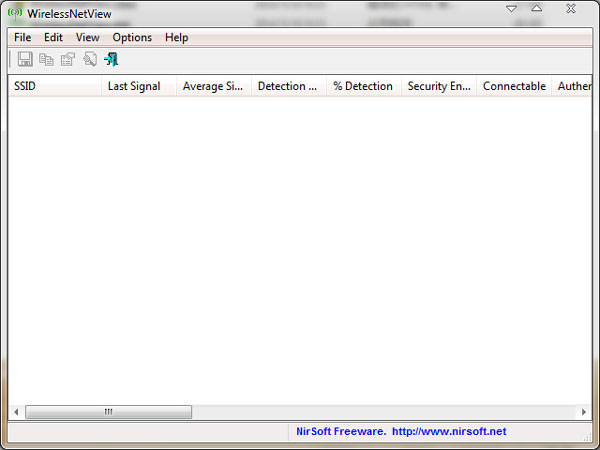 超强信号监视器WirelessNetView ,展示所搜索到的无线信号的:SSID, Last Signal Quality, Average Signal Quality, Detection Counter, Authentication Algorithm, Cipher Algorithm。