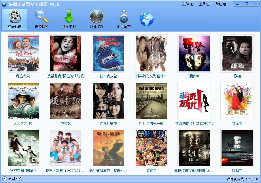 快播高清影视下载器集影视推荐、视频搜索、探测、解密、下载于一体,视频更清晰,搜索更全面,资源更丰富,下载速度更快,不用安装快播就可下载快播资源,支持酷6网快播专区、激动纠客的快播影视下载,还支持快播资源的批量下载,是您下载高清视频的首选软件。