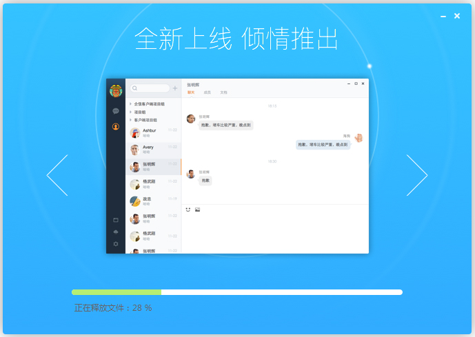 工作专属即时通讯工具,图、文、音、文档、红包、电话会议、群通知、群投票。
