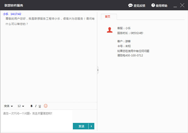 联想软件服务独立版(联想智能机器人)能够根据关键字给出问题相应的解决方案,用户依照给出的步骤行事即可。联想软件服务一天24小时在线,在电脑使用中有任何问题都将帮您解决。