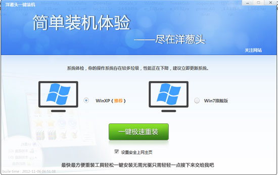 洋葱头一键装机是一款简单的一键安装系统工具,让不懂得如果安装系统的你简单实现系统重装,这一切你只需要交给一键u盘装系统【洋葱头】,轻点一键重装,接下来的交给洋葱头吧。