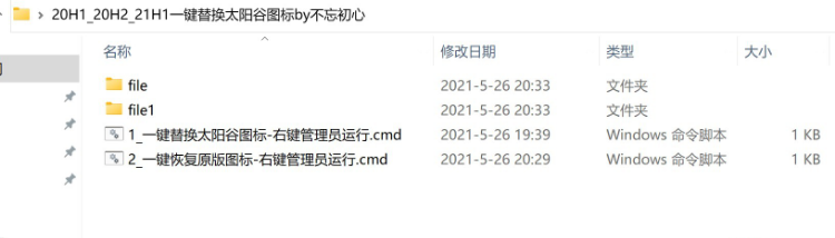 太阳谷图标确实很好看,很新颖 !论坛也有相关替换教程,有的需要改权限,有的需要PE下替换,有的还得重启,搞不好很容易翻车,有些小白同学只能望梅止渴,今天以上统统告别,初心写了一键批处理,而且不用重启电脑!点一下鼠标立马拥有太阳谷图标,就是这么方便,注意运行前最好退出所有安全软件!另外也可以一键恢复原版图标,两种图标你随意替换!如果你觉得太阳谷图标文件夹预览不好看,我还给出了 禁用文件夹预览.cmd 和 恢复文件夹预览.cmd,赶快下载折腾吧!