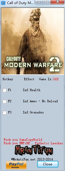 使命召唤6现代战争2是一款经典的射击游戏作品,主要围绕第二次世界大战的经典战役,带给玩家全面的现代战争体验,喜欢射击游戏的玩家不要错过。今天给大家带来一款该游戏的辅助修改工具,添加了无限生命、弹药等四项功能,适合新手玩家使用,需要的可以试试哦。