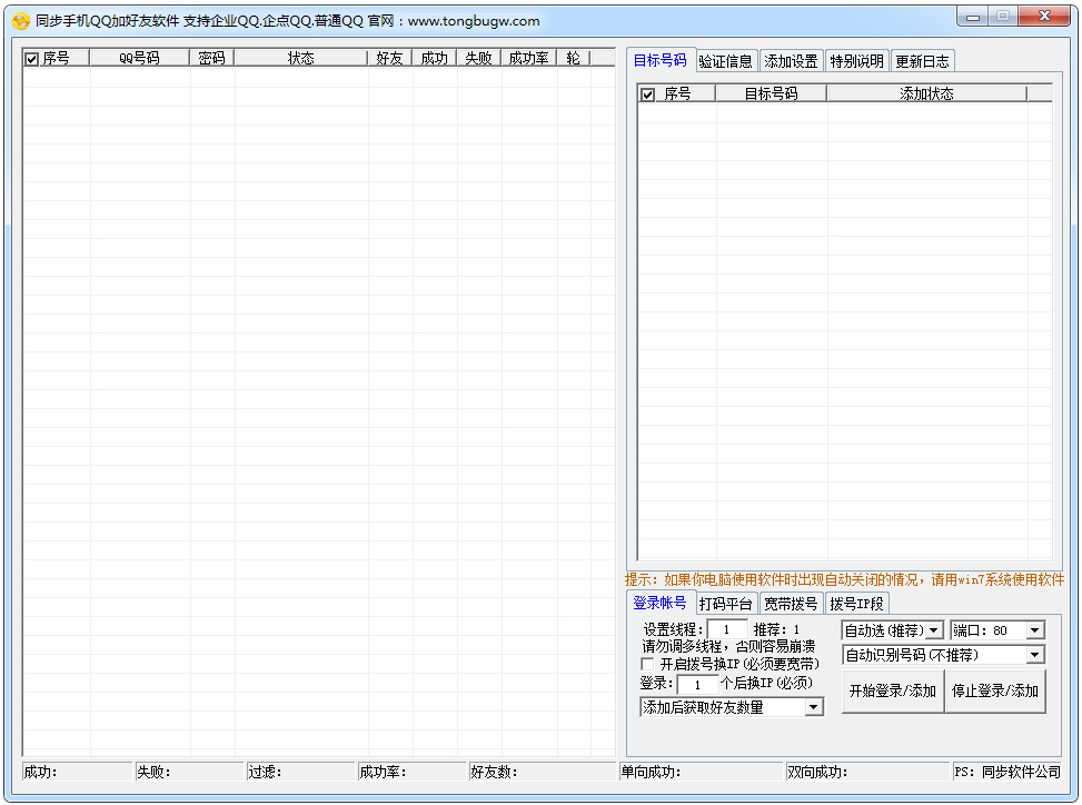 同步手机QQ加好友软件,导入一批小号和目标,批量登录小号添加目标号码!支持普通QQ,企业QQ,企点QQ!软件采用安卓手机QQ开发!