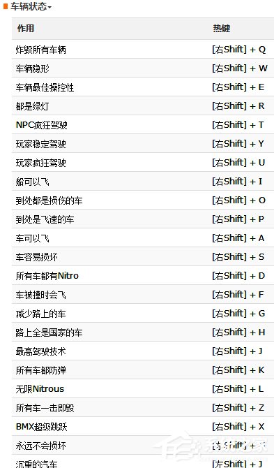 炸毁所有车辆[右Shift] + Q