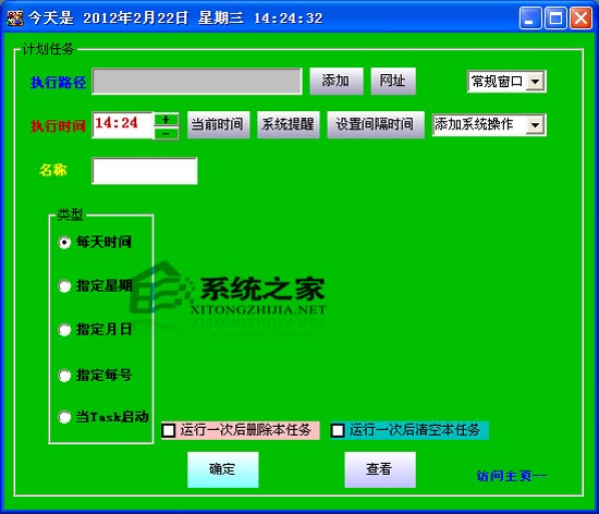 定时关机、重启,注销、打开网址、程序,定时关闭进程,还可做日常提示.