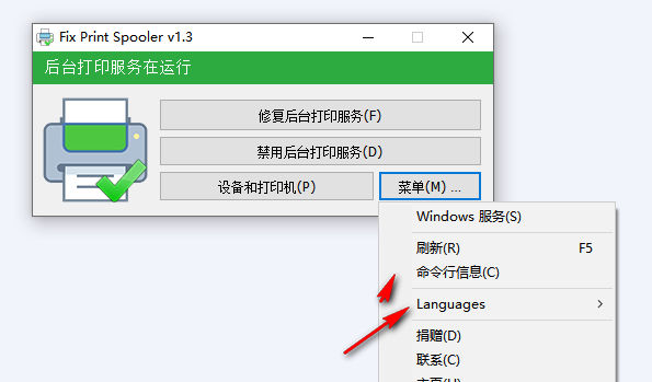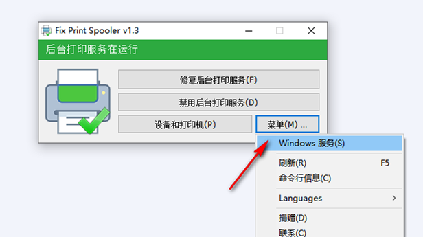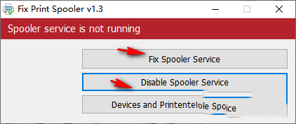3. 您可以点击Disable Spooler Service禁止打印服务,点击Fix Spooler Service重启服务。