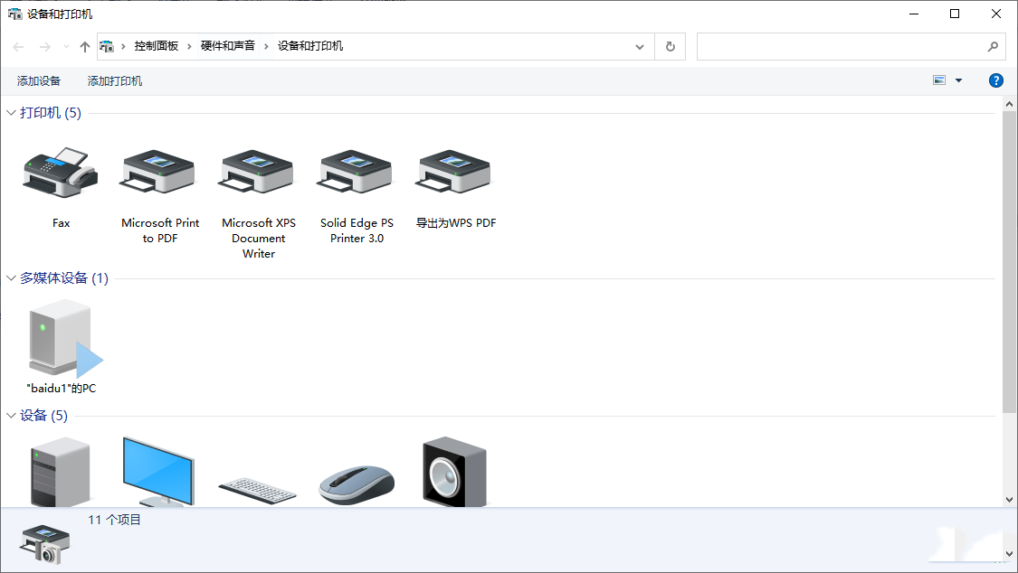 4. 点击Devices and Printers进入打印设备管理界面,可以查看电脑的全部打印机。