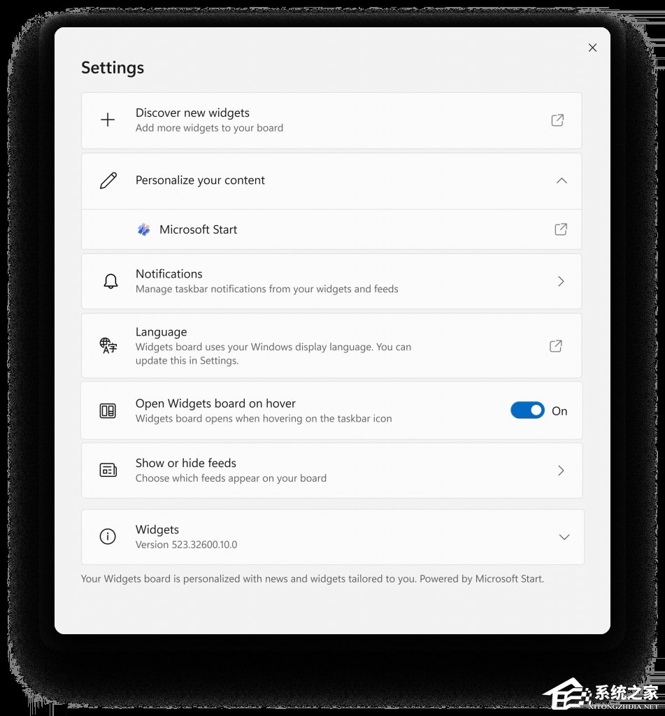 新的设置体验还允许您选择要用于 Microsoft Start 支持的小部件和源的帐户。这意味着您不再局限于使用用于登录 Windows 的帐户来驱动这些体验,就像其他应用程序支持的小部件一样。您可以通过导航到小部件板设置中“个性化您的内容”部分下的“Microsoft Start”设置,轻松管理 Microsoft Start 使用的帐户。此更改使您可以根据自己的喜好进一步个性化体验。新的设置体验不受地域限制。