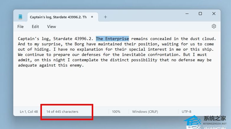 记事本中选定文本的字符计数。