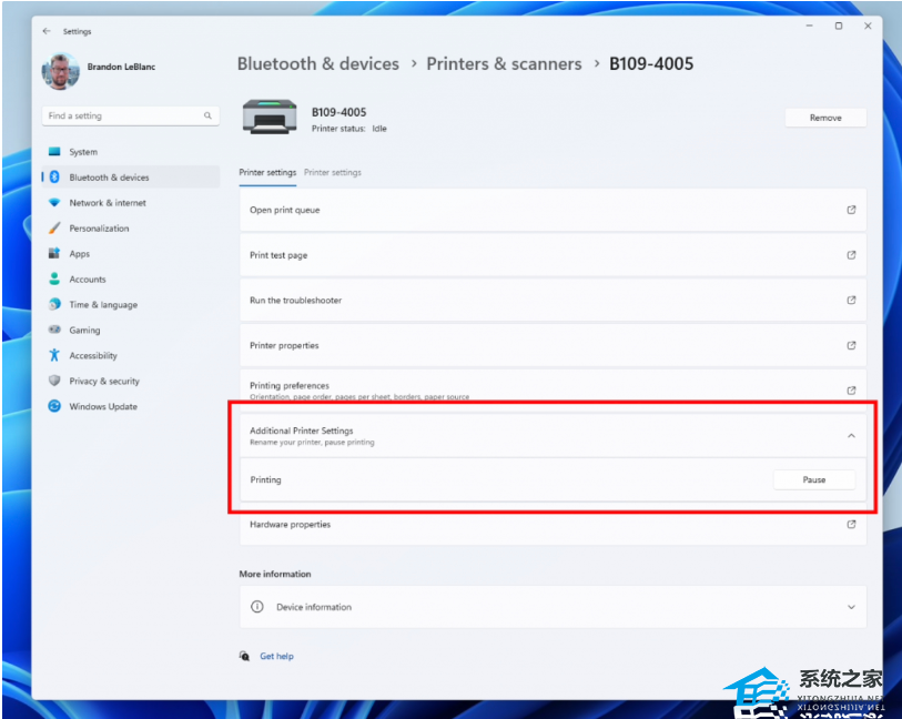 微软为“设置”的“打印机与扫描仪”功能添加了“打印队列中暂停和恢复打印作业”的功能,允许用户临时暂停打印,以进行墨盒更换等工作。