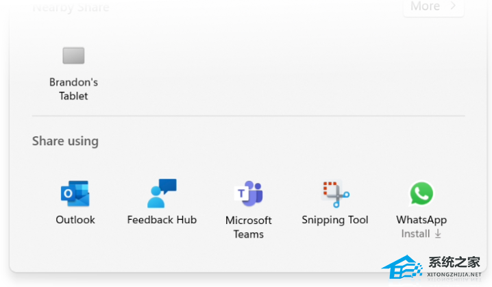 现在 Windows 支持在“就近共享”页面将文件快速分享到 WhatApp 应用中。