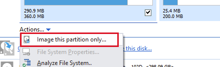 通过在应用程序主窗口中选择一个磁盘,点击一个分区,然后点击‘Actions’并选择‘Image this partition only …’。