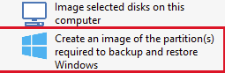 通过选择“创建备份和恢复Windows所需的分区的映像”。使用此选项将选择启动Windows所需的所有分区。这可能包括Windows启动和运行所必需的隐藏系统分区。