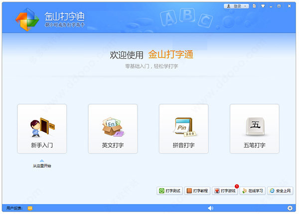 1. 打开软件界面如下,支持新手入门,英文打字,拼音打字,五笔打字。