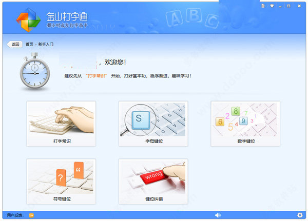 4. 新手入门:支持打字常识,字母键位,数字键位,符号键位,键位纠错等,用户可以依次学习。