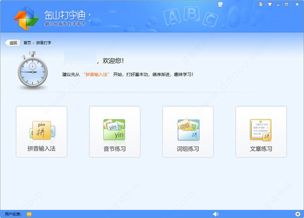 7. 拼音打字:大部分用户只要会拼音即可打字,支持音节练习,词组练习和文章练习。
