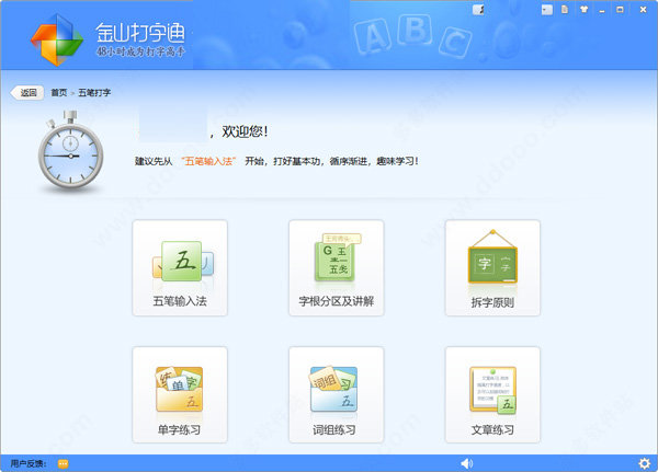 8. 五笔打字:可以让用户学习五笔打字,详细介绍了字根表,拆字原则,单字练习,词组练习等。