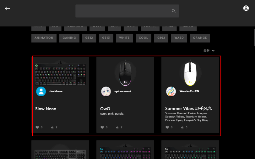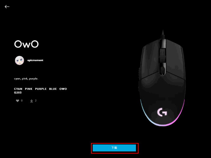 5. 通过预览找到您喜欢的灯光然后进入,点击下载安装即可将灯光应用到罗技的鼠标上。