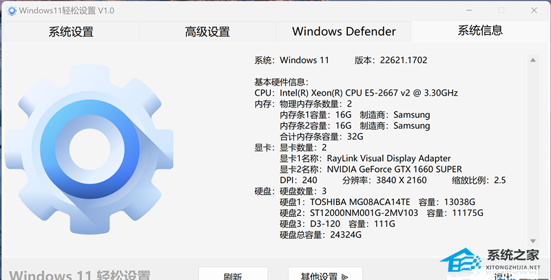 Windows11轻松设置是一款非常实用的工具软件,可以提高用户的工作效率和使用体验,帮助我们更好地对系统进行设置和优化处理,软件的操作界面清晰直观,各项功能一目了然,支持多种设置选项。有了它,我们不再需要准备N个小工具,查看N个优化教程。直接在这一款软件上就能完成绝大部分优化,需要的朋友们就来下载吧!