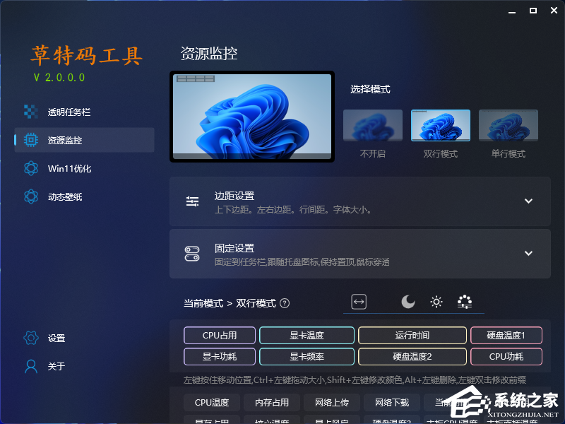 3. 资源监控模式设置,可以在顶部点击“双模式”“单模式”。
