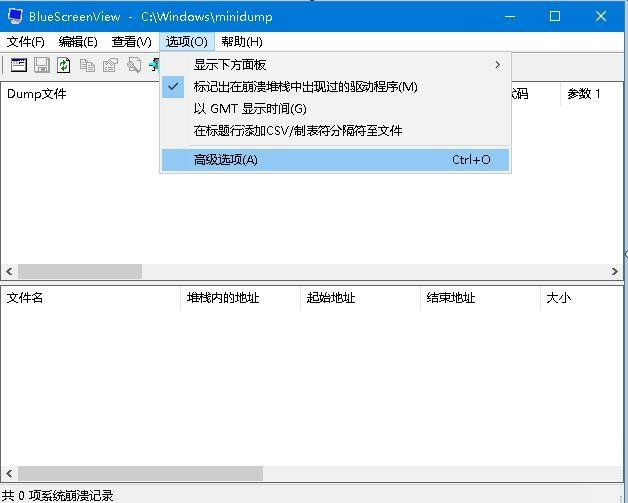 1. 打开软件,点击高级选项,可以C:WindowsMiniDump文件中加载minidump文件。