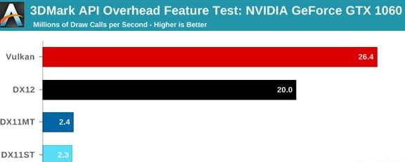 从之前3DMark测试来看,N卡在Vulkan下的渲染效率比DX12要高,更是DX11的十倍。