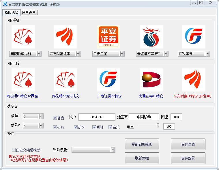 股票交割器是一款能够帮助喜欢炒股的股民进行选股交易以及股票交割的软件,软件能够在电脑上显示手机页面,支持对国内常见的如同花顺、东方财富等多个交易平台进行数据查看和更新交易截图,是一款功能非常强大的选股炒股软件。