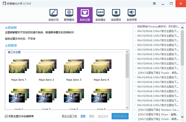 软媒美化大师免费版主要用于给Windows系统外观美化。系统美化主要包括开机和关机的动画,主题美化、指针美化,壁纸美化等等。如果您下载使用了这款软媒美化大师,就可以给电脑换一身“新衣服”,变得更加好看。而且软媒美化大师使用方便,完全不占内存。