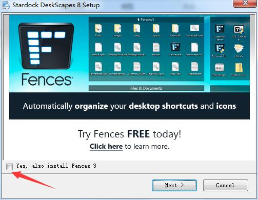 安装时不能选择【Yes,also install fences 3】勾选状态将无法正常安装。