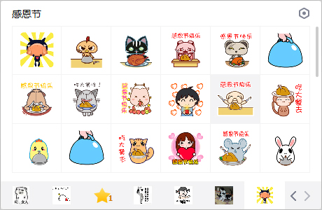 感恩节QQ表情包为你带来翔通动漫各个卡通形象的感恩节表情。每年11月的第四个星期四是美国传统的感恩节。在美国人的心目中,感恩节的重要性仅次于圣诞节。每逢感恩节这一天,美国举国上下热闹非常。城乡市镇到处举行化装游行、戏剧表演和体育比赛等,学校和商店也都按规定放假体息。孩子们还模仿当年印第安人的模样穿上稀奇古怪的服装,画上脸谱或戴上面具到街上唱歌、吹喇叭。当天教堂里的人也格外多,按习俗人们在这里都要做感恩祈祷。而在感恩节,每家的家庭成员总是力争从天南海北归来,一家人团团围坐在一起,大嚼美味火鸡,畅谈往事,这怎不使人感到分外亲切、温暖。
