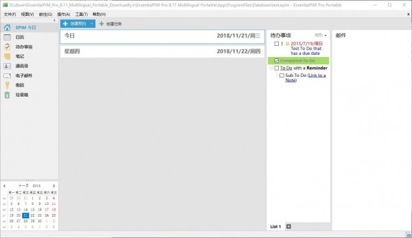essentialpim pro是款非常杰出的个人信息管理和工作手册软件。essentialpim pro能够很好的帮助用户管理个人信息,功能功能,简单易用,能以电子化的形式保存您的信息,您所有的日程、任务、记事、通讯录、登陆密码都保存在图形化界面中且形式简便。