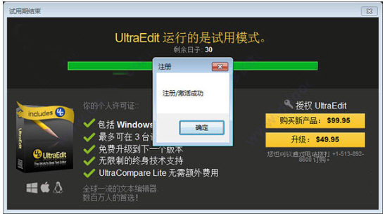 3、打开UltraEdit 32原程序,软件会自动检测注册信息,我们选择“输入许可证秘钥”