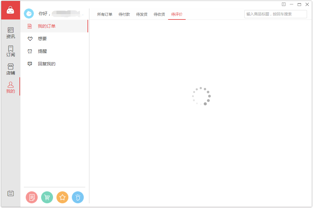 5、输入淘宝账号登录,当用户登录后,首先呈现的是悬浮在桌面上的小窗口,窗口上有很多小图标,包括各类商品、资讯、提醒等信息