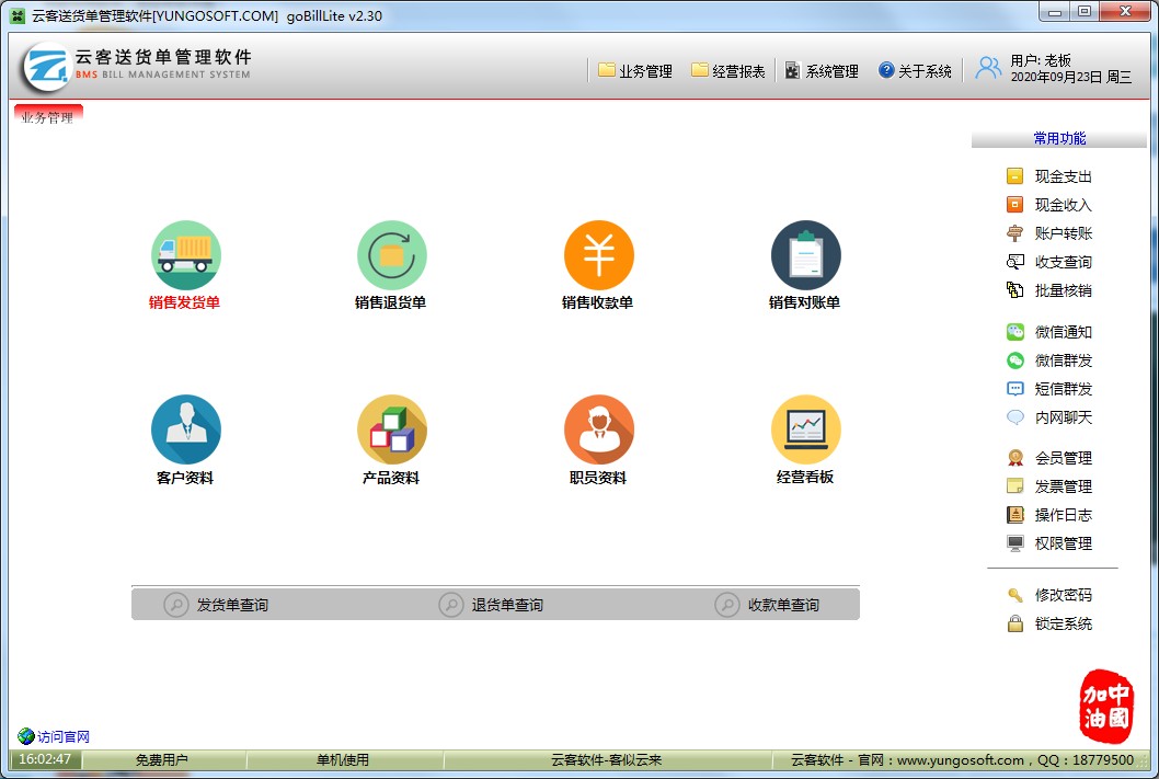 云客送货单管理软件是一款送货单管理软件,功能齐全,上手简单,帮助用户管理销售发货送货,附加销售对账,收银管理,会员管理等功能,可以微信通知,内网聊天。